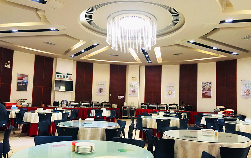 干凈、亮堂、典雅走進就餐大廳,映入眼簾的是干凈亮堂的環(huán)境照明,典雅舒適的設(shè)計布局,30多張中式圓桌錯落其間,能夠同時滿足300多人用餐;為積極響應(yīng)光盤行動,供餐采用自助打餐和小碗菜自取,想吃什么自己按需添加;食堂顯眼處,懸掛著“拒絕餐飲浪費”“厲行節(jié)約”等溫馨提示牌,鼓勵按需、少量、多次取餐。