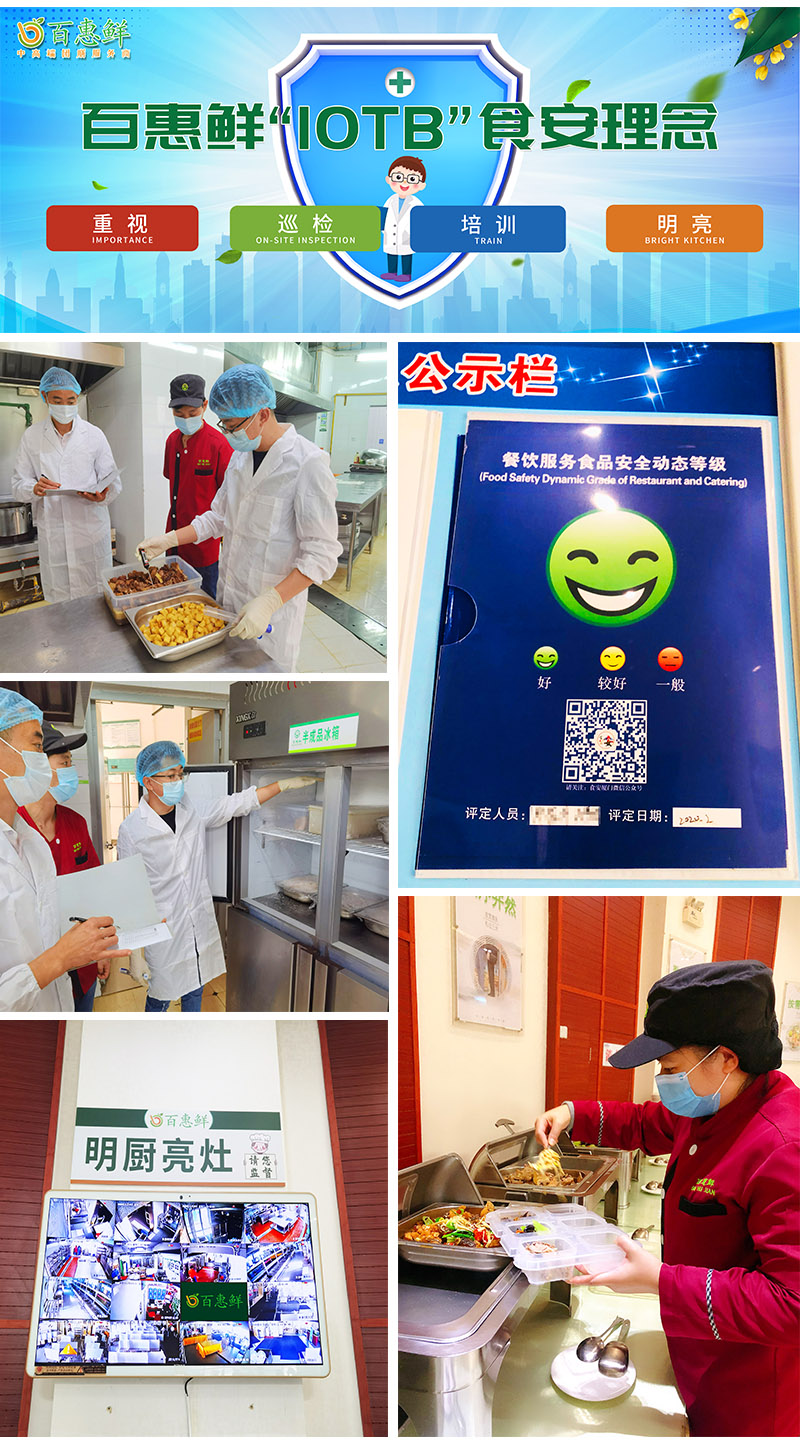 食材檢測、食品留樣、明廚亮灶、培訓考核四重保障作為當?shù)厥袌霰O(jiān)督局評定的食品安全A級食堂,該機關(guān)食堂在食品安全上實行高標準制度,百惠鮮食安專員每天定期進行廚房衛(wèi)生巡檢,對當天要用的肉類、蔬菜、海鮮等食材進行抽檢,開餐前及時進行菜品留樣操作,保證食品安全及溯源渠道;食堂團隊成員定期接受食安培訓和考核,合格方可上崗。疫情期間,每日餐廳消毒、查體溫、嚴格記錄每日食材的來源,并全部公開透明化,供大家監(jiān)督。
